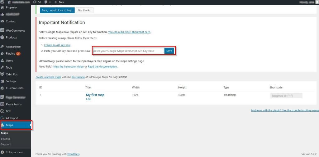 Aby zatem nadal korzystać z możliwości wyświetlania mapy Google należy wykonać konfigurację danych dotyczących płatności, które zwykle wiąże się z podaniem klucza weryfikującego API.